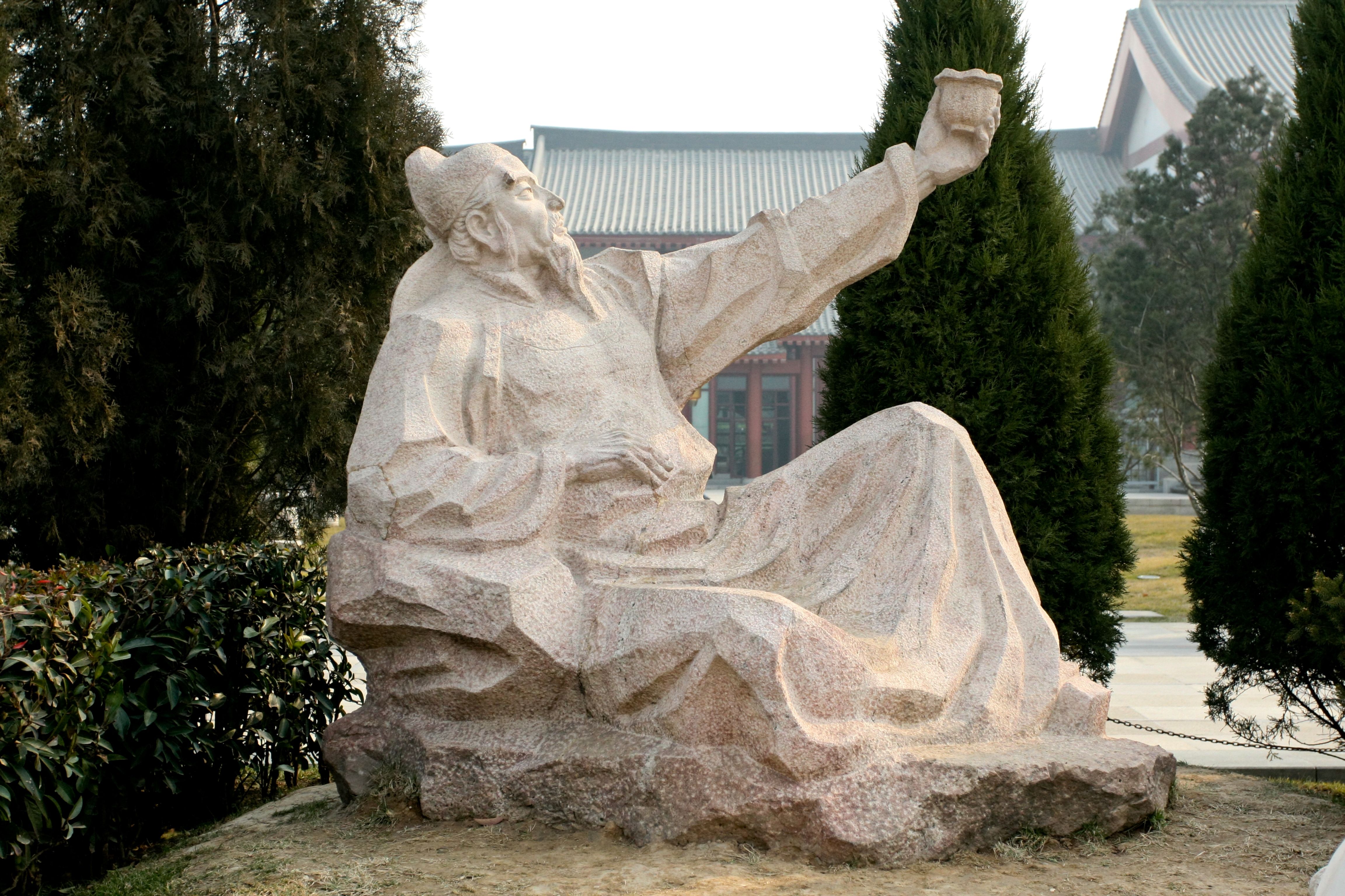圖為唐代詩人李白的雕像,將他的詩作《月下獨酌》中的「舉杯邀明月,對影成三人」刻劃地活靈活現。