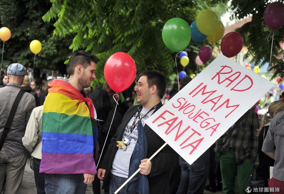 今年 3月,斯洛維尼亞國會通過同志婚姻法,但法案還沒上路就遭到公投推翻。圖為參加同志大遊行的斯洛維尼亞人。