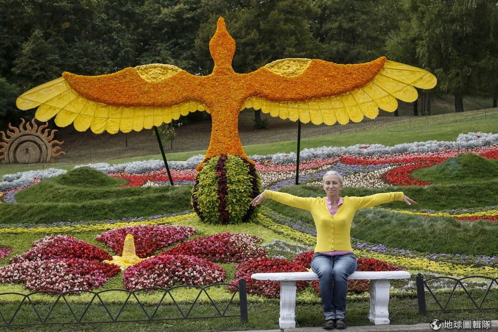 一年前,沒人想買烏克蘭的公債,沒想到烏克蘭公債在今年一飛沖天,讓人跌破眼鏡。圖為一名遊客在烏克蘭的花卉博覽會上留影。