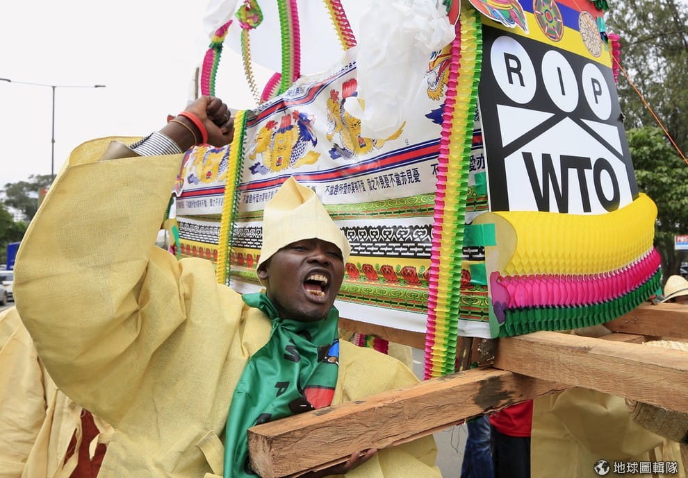 在奈洛比街頭,抗議民眾抬著WTO的棺材來到會場外示威,他們不滿WTO沒有捍衛窮國的權利,也沒有讓市場變得更公平。