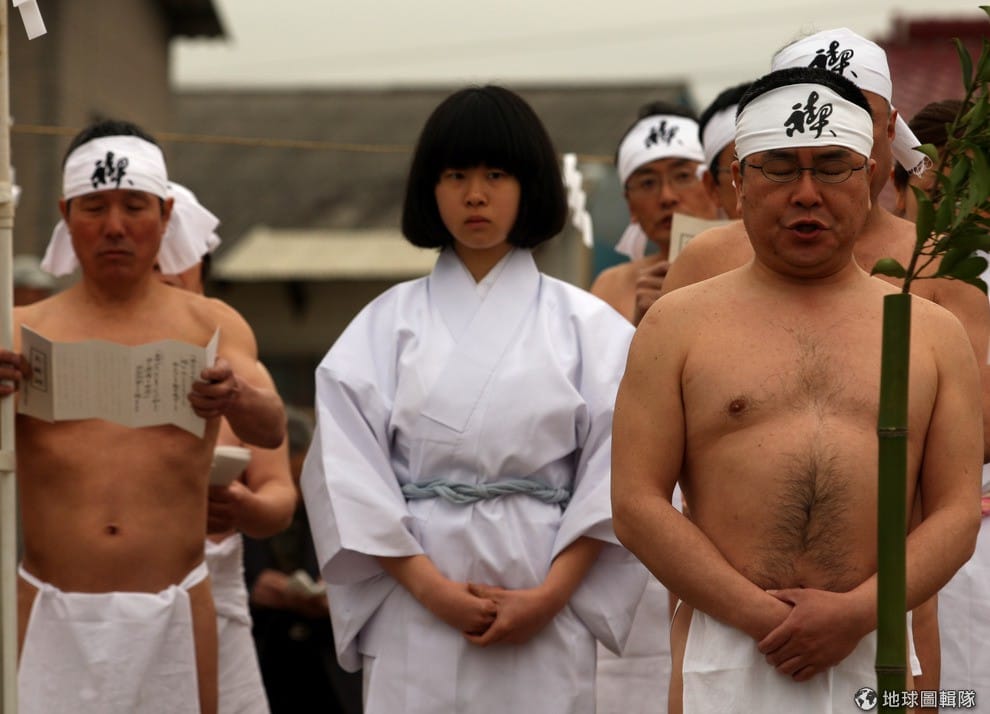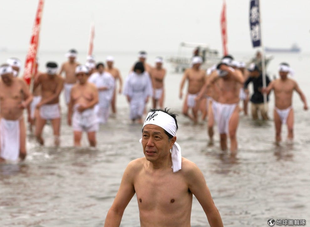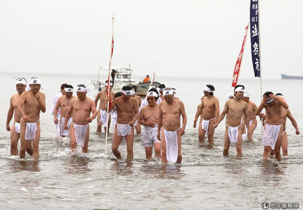 進入正式的祈福儀式前,神社的神職人員們會先在海水中淨身。Buddhika Weerasinghe/Getty Images