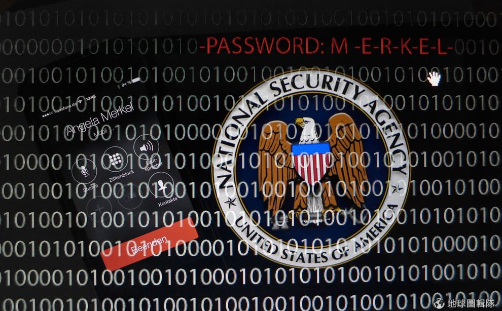 圖為諷刺美國政府監聽德國總理梅克爾手機