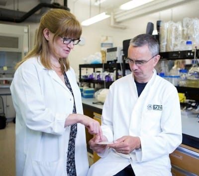 圖為發明神奇繃帶的Amber Young 博士(左)與 Toby Jenkins 博士。