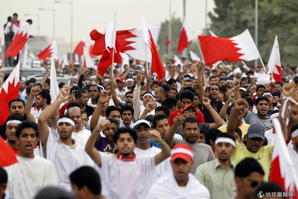 圖為 2011年上街抗議要求政權改朝換代的巴林人民,其中有許多都是什葉派穆斯林。沙國擔心什葉派穆斯林坐大,當時有派遣軍隊協助巴林政府鎮壓。