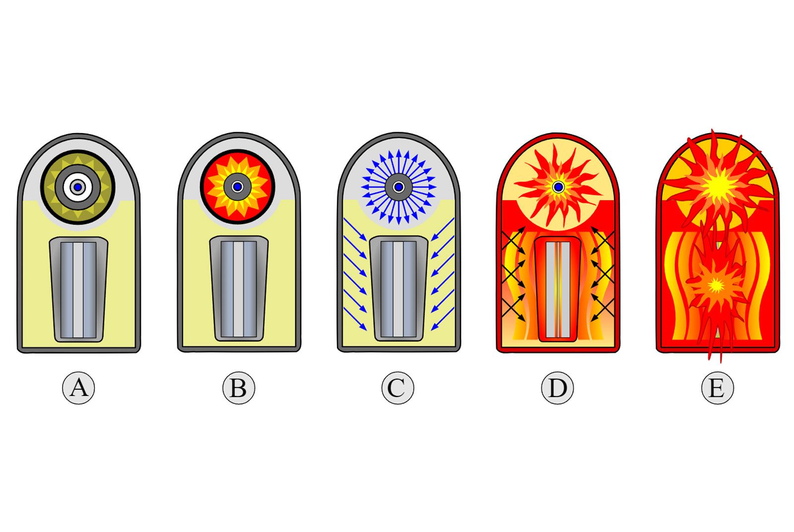 氫彈的原理有點複雜,但基本上可以把它的運作過程想成是2顆炸彈先後爆炸。