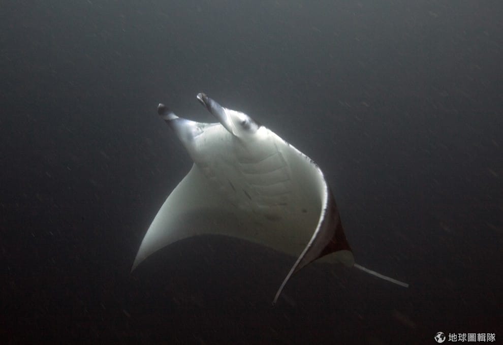 網友拍下正在濾食的蝠魟(Giant Manta)。