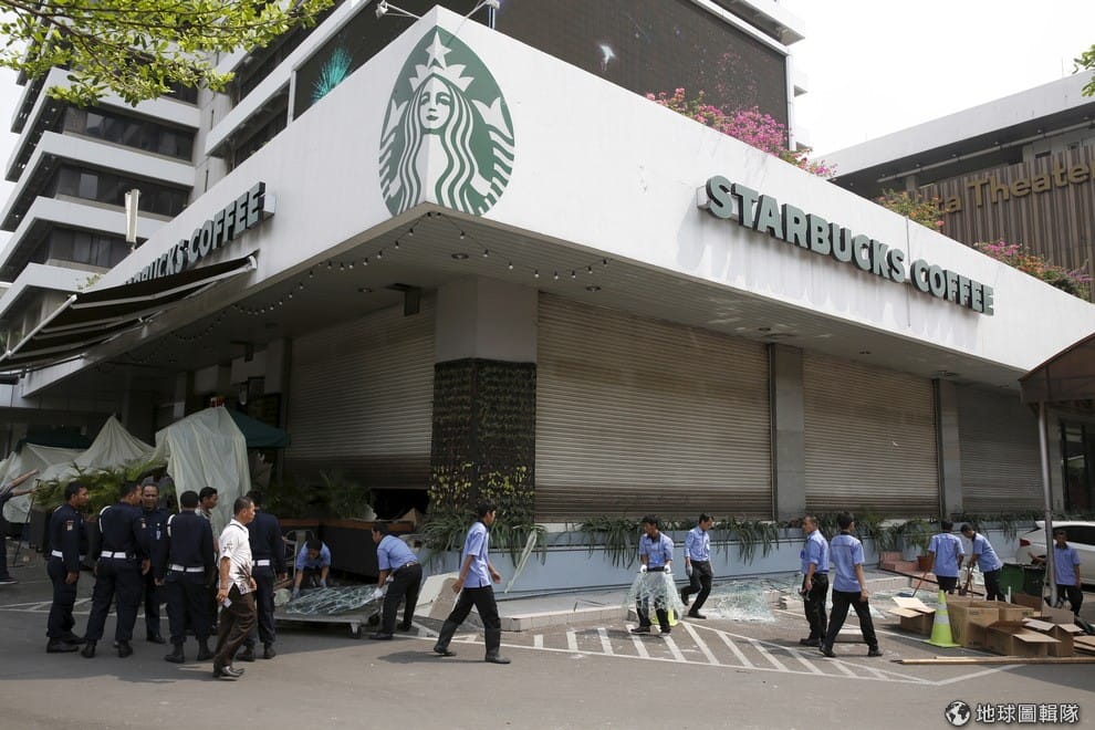 《半島電台》、《路透社》、《德國之聲》、《衛報》綜合報導,印尼首都雅加達驚傳恐怖攻擊,武裝分子在鬧區一處星巴克引爆炸彈並持槍掃射路人,在第一起爆炸傳出後,市區內又有五起爆炸攻擊接續發生。目前至少有 7人死亡,當中包含 5名兇嫌。伊斯蘭國(IS)已發表聲明這起恐攻是他們所為。