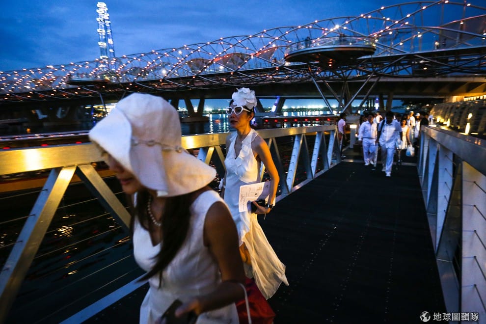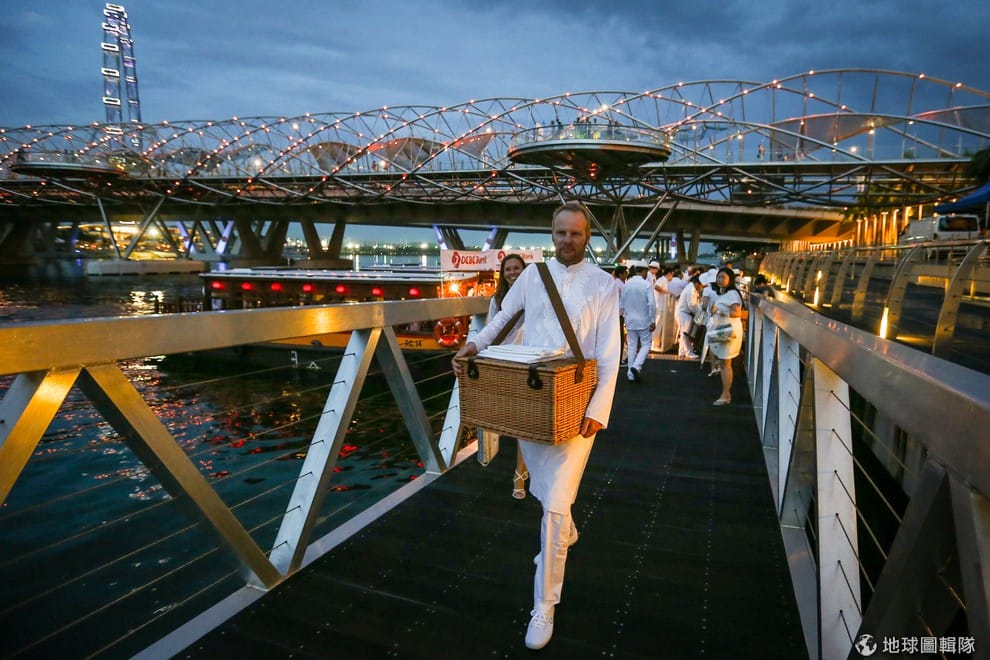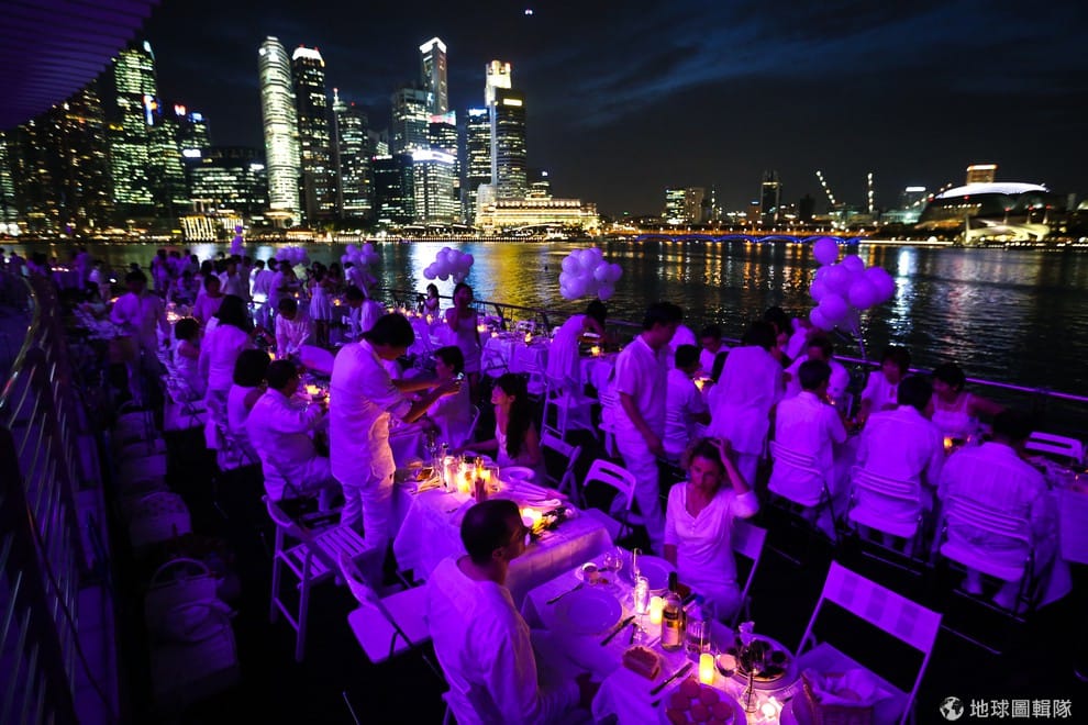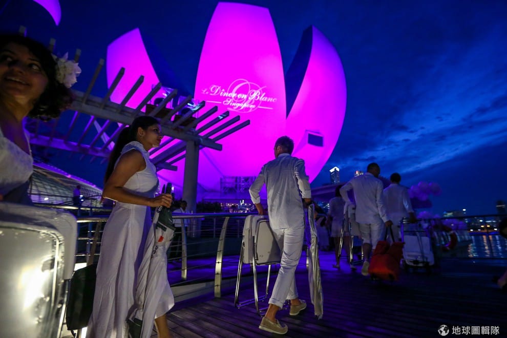 30號晚間,新加坡在藝術科學博物館前舉辦了來自巴黎的高級晚餐活動,「白色晚餐」(Diner En Blanc)是從「野餐」的概念而來,參與的民眾除了準備自己要吃的菜色之外,也要身著全白服裝,餐具桌椅也必須是白色。