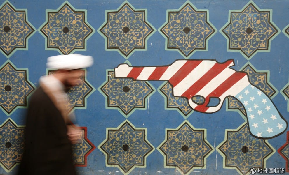 一名伊朗教士經過前美國大使館。數十年來,伊朗一直因為爭議的核子計畫遭到國際制裁。