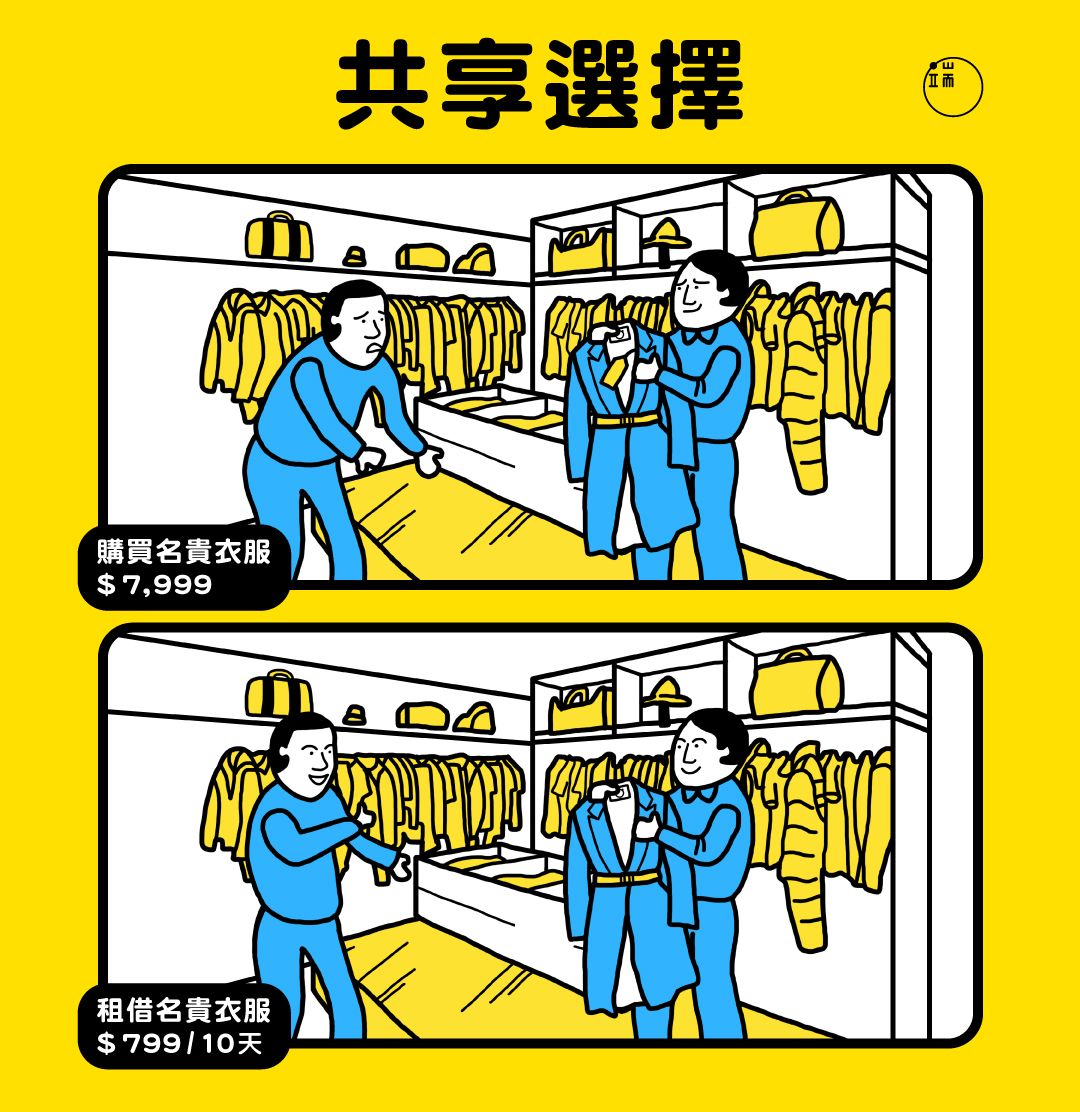 如果說Just Park體現人們開源節流的選擇,同樣倡導「使用替代擁有」的Rent the Runway映射的,可能是資本主義經濟體系中始終無法停止膨脹的消費慾望:雖然沒錢購置奢侈品,始終可以經由租借消受幾晚;同樣價錢能夠消費的奢侈品陡然倍增,穿穿脫脫,更換造型之際,才是心理滿足程度最高之時吧。