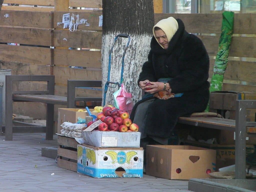 摩爾多瓦除了政治危機,經濟蕭條也造成不少社會問題,圖為一名在街旁販賣蔬果的小販。