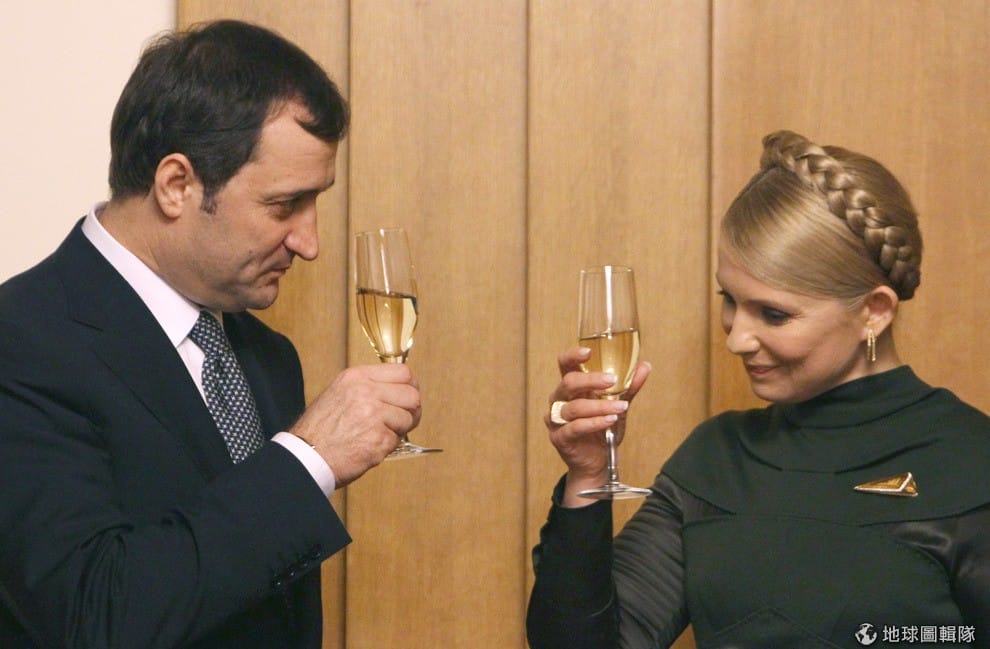 圖為 2010年,時任摩爾多瓦總理的費拉特(左)和烏克蘭總理季莫申科(右)敬酒。目前,費拉特因為身陷貪腐醜聞,已經被逮捕下台。