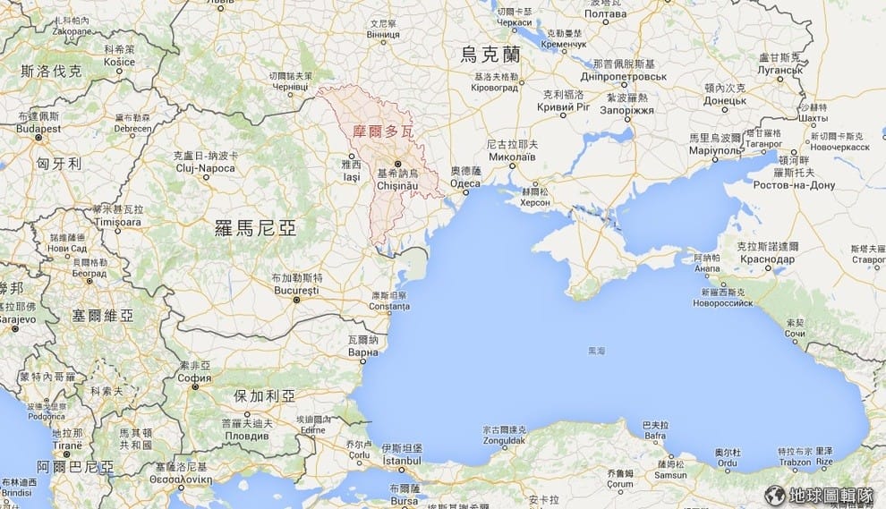 圖中紅色區塊即為摩爾多瓦,它介於烏克蘭和羅馬尼亞之間,是全歐最窮的國家之一。