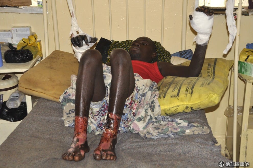 繼續閱讀博科聖地在 2015年2月針對巴士進行炸彈攻擊,當時造成嚴重傷亡,圖中是受到波及受傷的民眾,他皮開肉綻的雙腳尚未包上紗布。