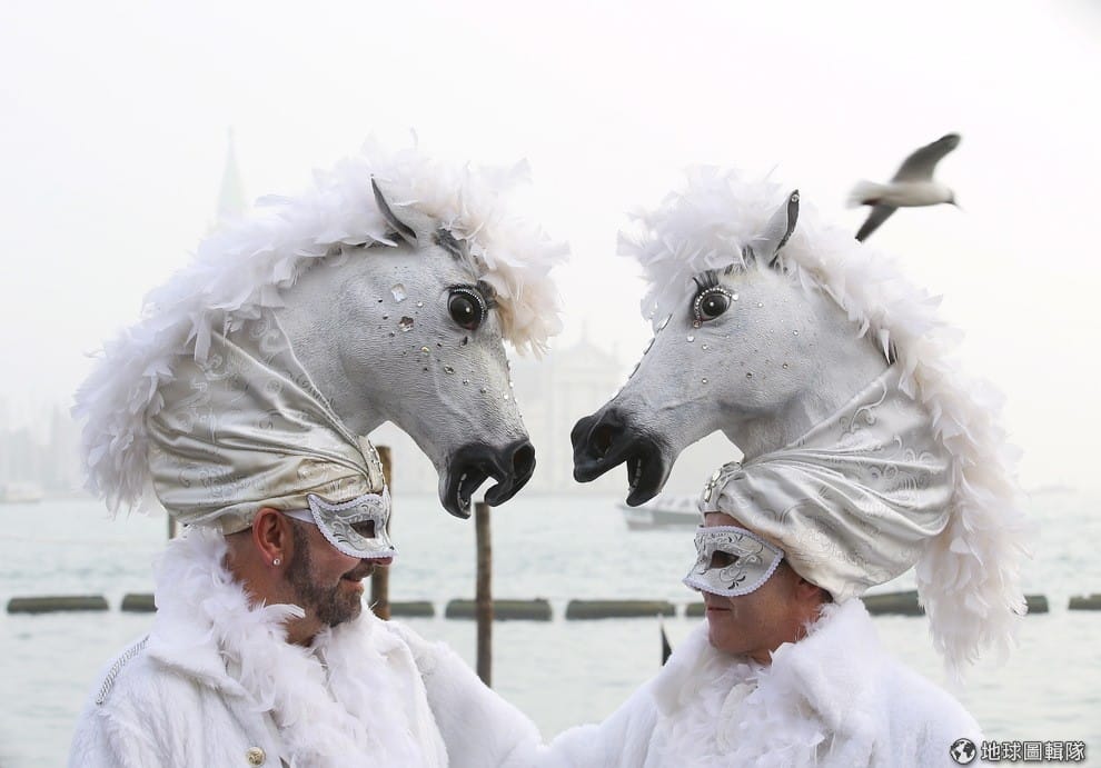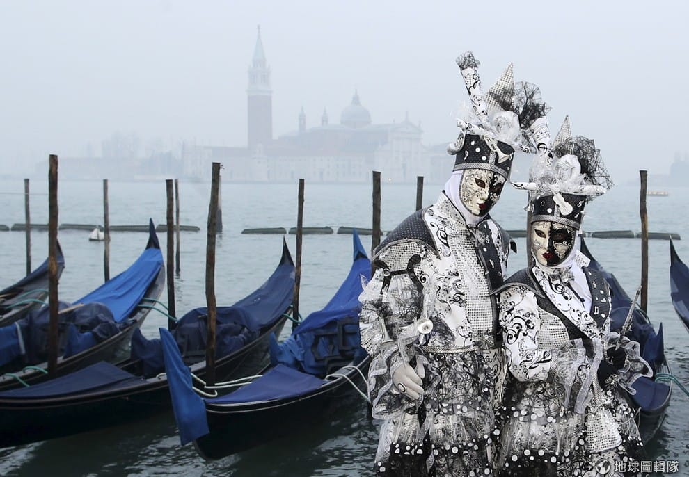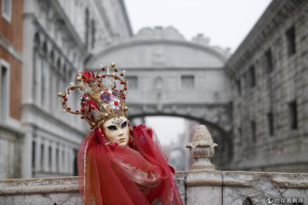 路透社所有人臉上戴著美麗的手繪面具,穿著華美服裝漫步在水道之間,是威尼斯嘉年華的一大特色。