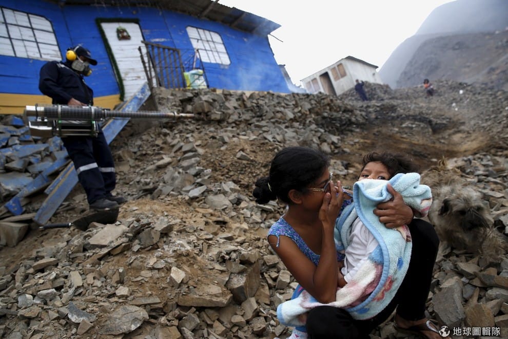 路透社茲卡病毒肆虐美洲大陸,上圖可見祕魯工作人員正在社區中噴殺蟲劑。