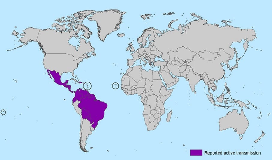 截至目前,光是在加勒比海區、中南美洲已有 23國以上出現茲卡病毒病例,巴西、波多黎各和墨西哥都包含其中,美國疾管署(CDC)的統計已累計有 29國。在哥倫比亞境內,截至 1月23日已累計 20,297起病例,其中有 1,050例是確診病例,約 2千名孕婦可能感染了病毒。