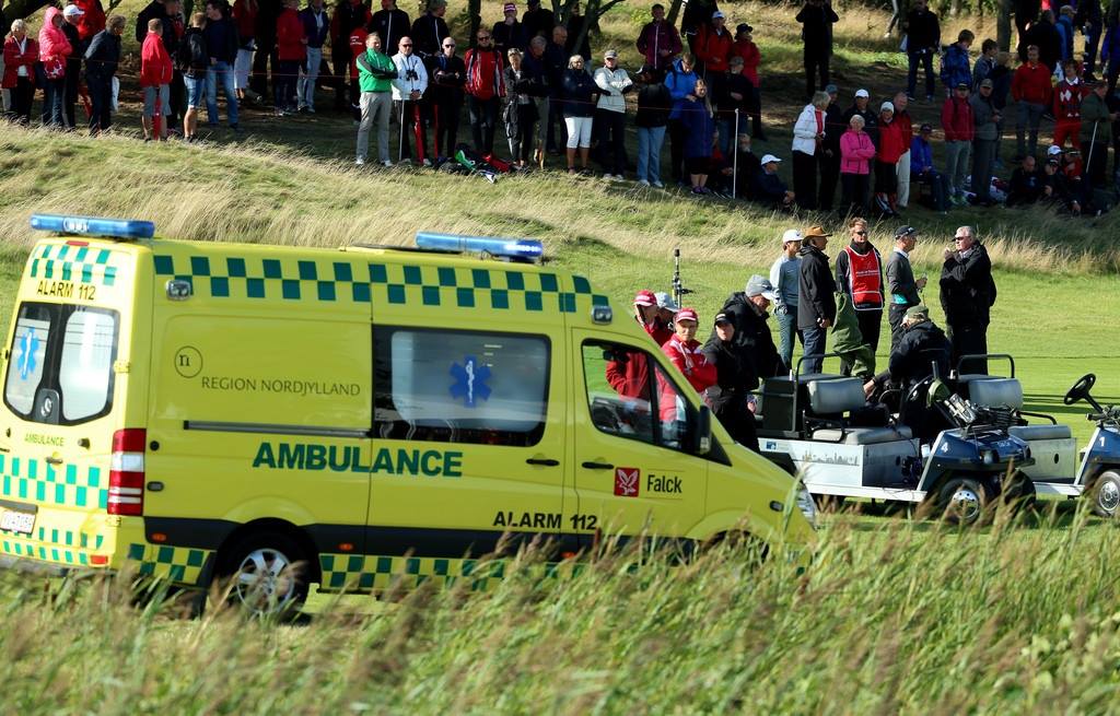 每當現場發生事故,救護車得立刻趕到現場待命。圖為丹麥黃綠格紋的救護車。