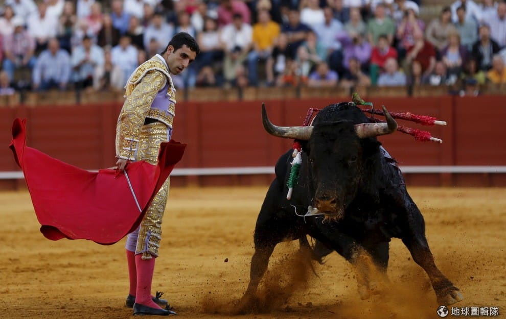 路透社圖為一名西班牙鬥牛士在場上鬥牛的模樣。