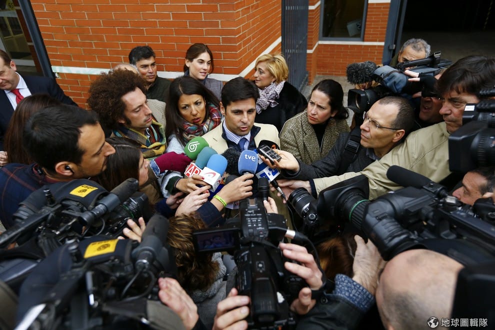 李維拉(中)因為抱女兒鬥牛的照片遭外界砲轟,圖為日前他被各家媒體追著跑的樣子。