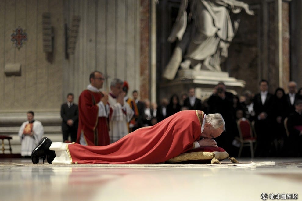 在聖彼得大教堂中進行救主苦難禮儀(Lord's Passion)的教宗。教宗方濟各(Pope Francis)出生於阿根廷,本名霍黑‧馬力歐‧柏格里奧(Jorge Mario Bergoglio),他在 2013年時被選為新任教宗,儘管在兩性議題如同性婚姻上屬於傳統保守態度,但在社會共融議題上,他強調平等、關懷弱勢。事實上,當年他 76歲的高齡,以及僅靠一片肺生活的健康狀態,讓外界對他的當選感到意外,這位充滿人道關懷以及謙遜印象的新教宗,過去大半輩子都住在阿根廷的公寓中,每天以巴士代步去教堂傳教。