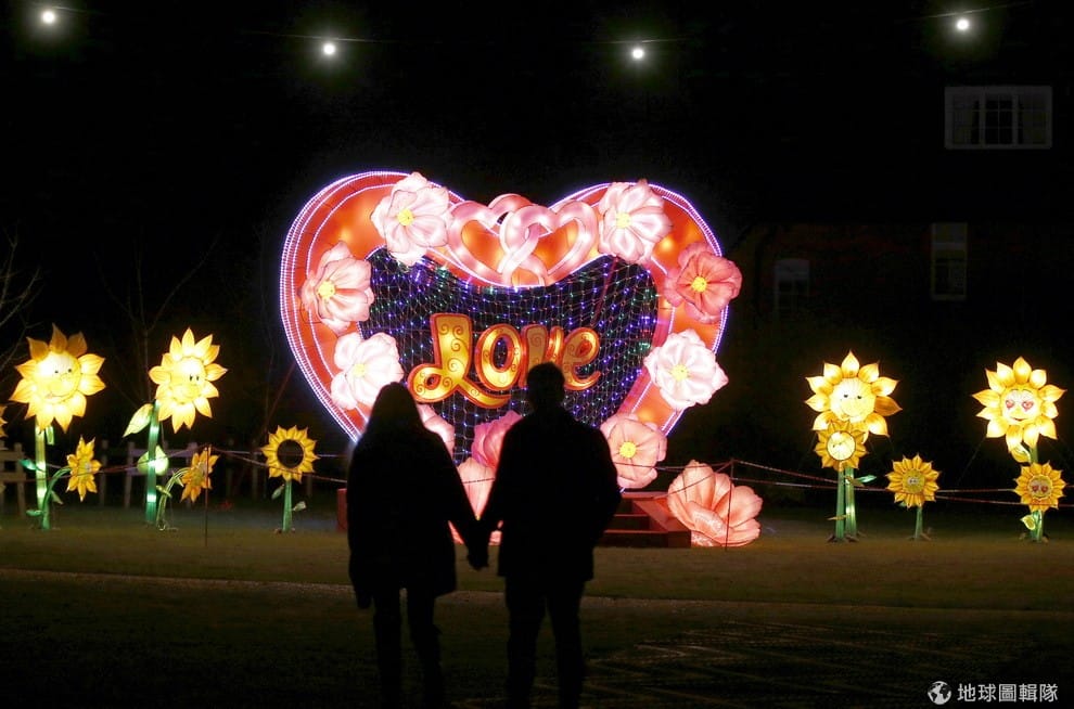 路透社農曆年後緊接著就是西洋情人節,奇西克莊園也設置了愛心形狀的燈光供人觀賞。