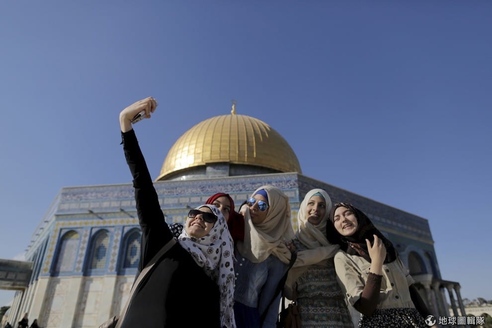 一群穆斯林女子在被視為宗教聖地的耶路撒冷阿克薩清真寺自拍。