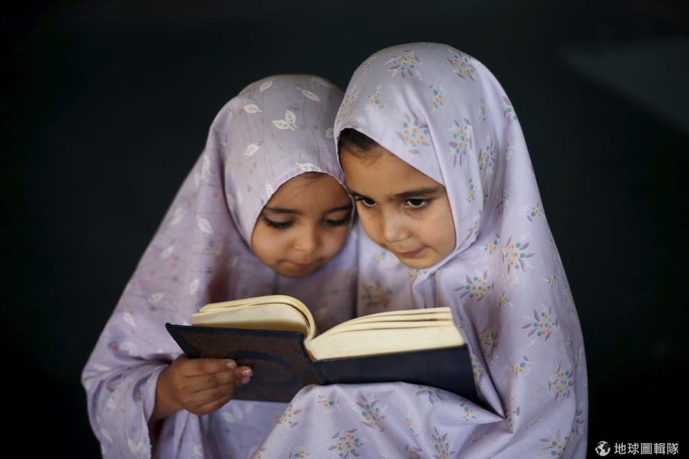 兩名小女孩讀著手中的古蘭經。過去,伊斯蘭教就有任命女伊瑪目的傳統。