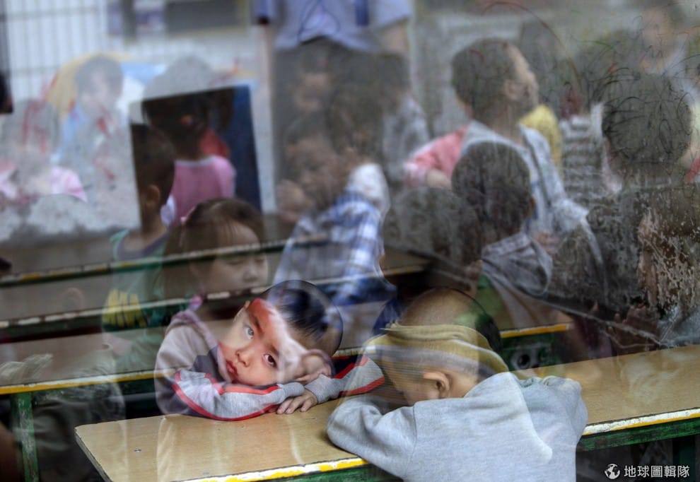 上海一所幼稚園內,小朋友趴在桌上。