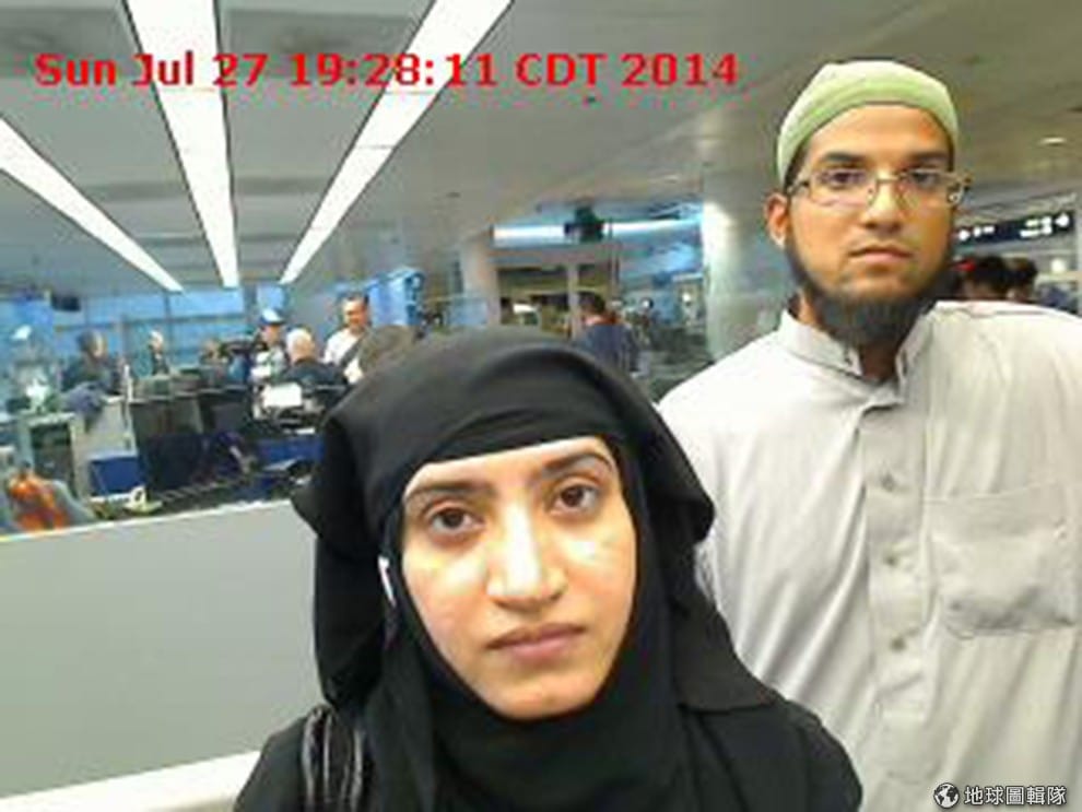 圖為犯下南加州槍擊案的夫妻馬里克(左)和法魯克(右),他們 2015年7月通過芝加哥奧黑爾國際機場時,被拍了下來。