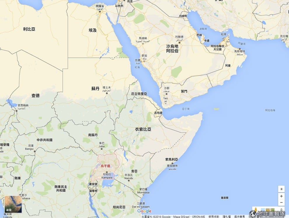 這禮拜選總統的烏干達位在東非,是一個內陸國家,上圖的紅色區域就是烏干達的位置。