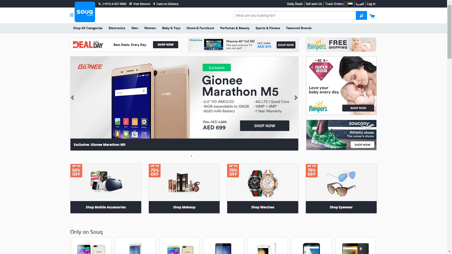 Souq.com網站首頁,可見以3C商品為主的品項。