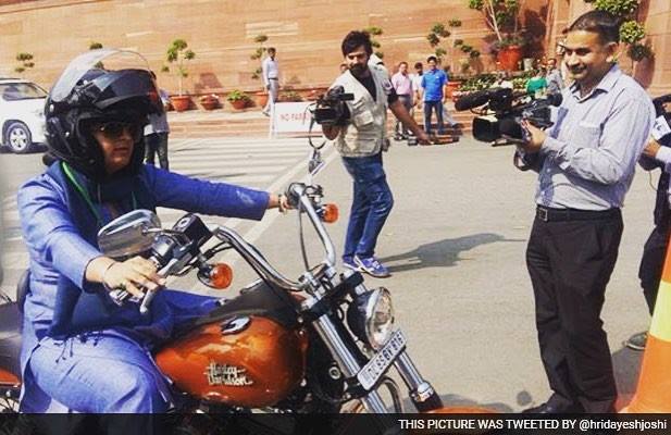 01 Congress MP Ranjeet Ranjan rides on Harley Davidson to Parliament