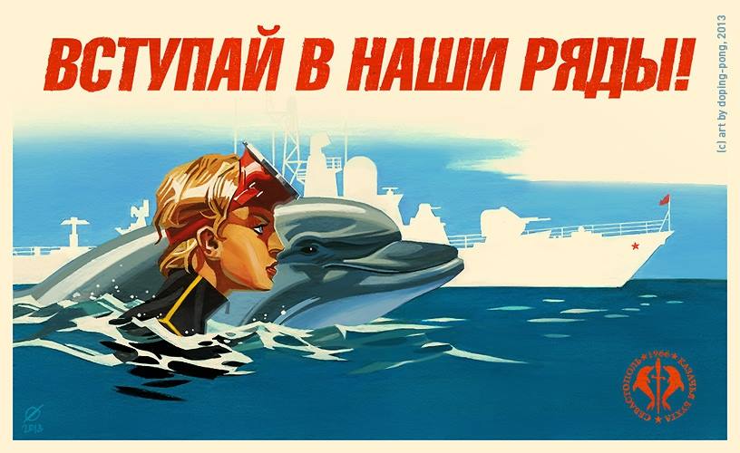 網友Beverly海報中的女性是蘇聯時期首位潛水突擊隊員,她的身邊正是一隻戰鬥海豚。海報中寫道:「加入我們的行列吧!」