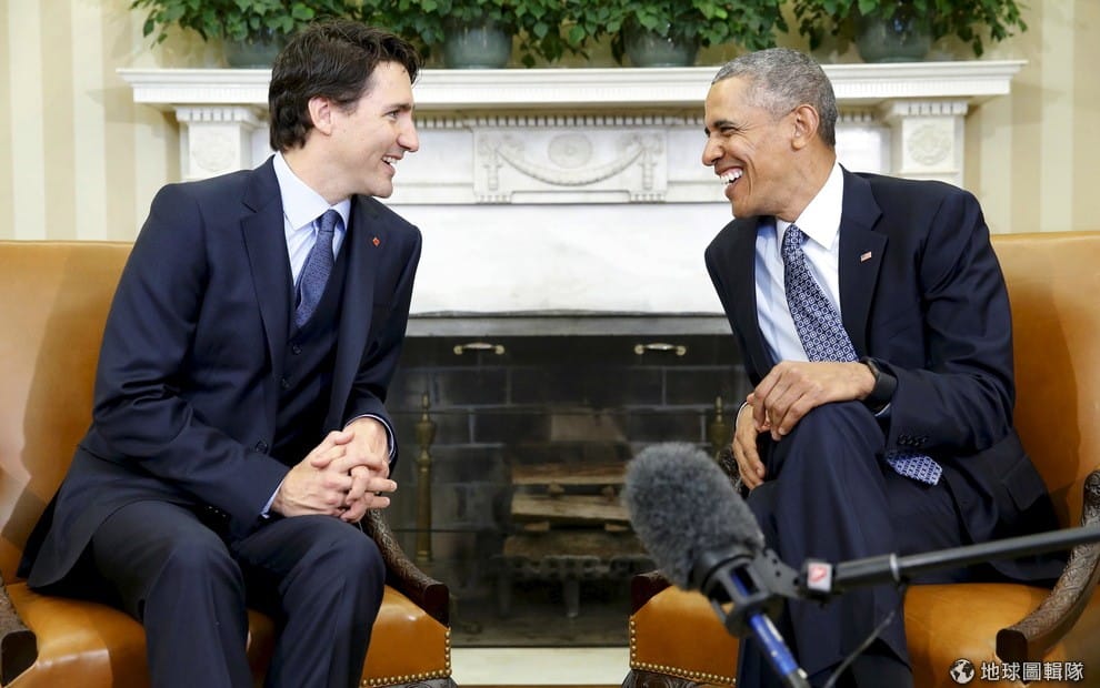 路透社加拿大總理杜魯道(圖左)和美國總統歐巴馬相談甚歡,兩人政治理念相似,外界更稱呼杜魯道為「加拿大歐巴馬」。