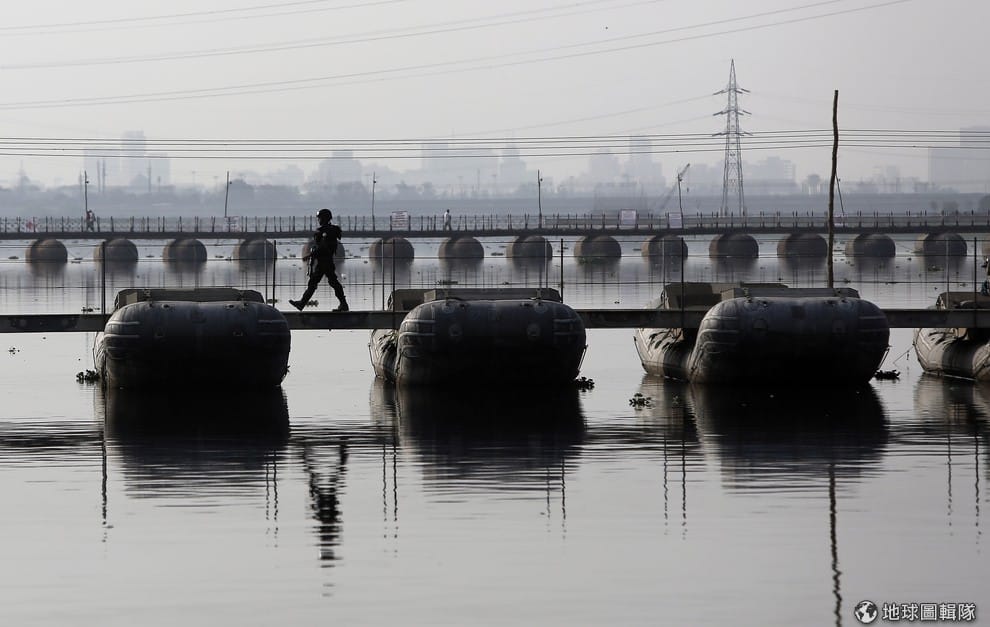 為了避免發生事故,印度軍隊在會場蓋了多座臨時用的浮橋。