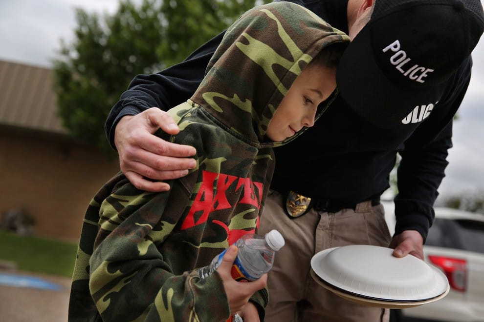gettyimages站在爸爸旁邊的是9歲的柯伊(Coy Zahirniak),他在事發當晚看到化肥工廠冒出火光,從爺爺家中跑出來叫家人快點逃難。Chip Somodevilla/Getty Images