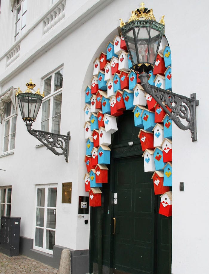 在丹麥哥本哈根街上抬起頭,你可能會看到兩旁的行道樹上掛著一座又一座的鳥屋,他們都是丹麥藝術家丹柏斯(Thomas Dambos)的傑作,專門來迎接翱翔天空的嬌客。