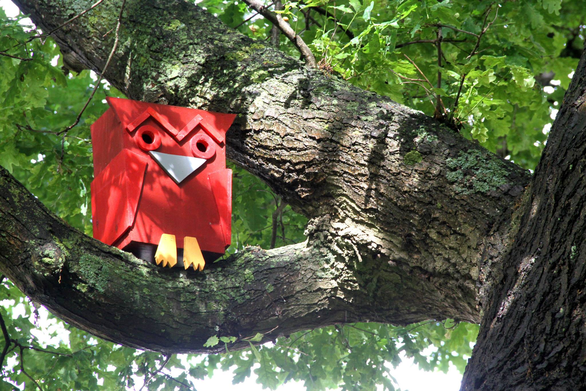 網友Thomas Dambos丹柏斯沒有忘記鳥兒們喜歡待在樹上的習性,他乾脆打造出一棵「鳥屋樹」投其所好。