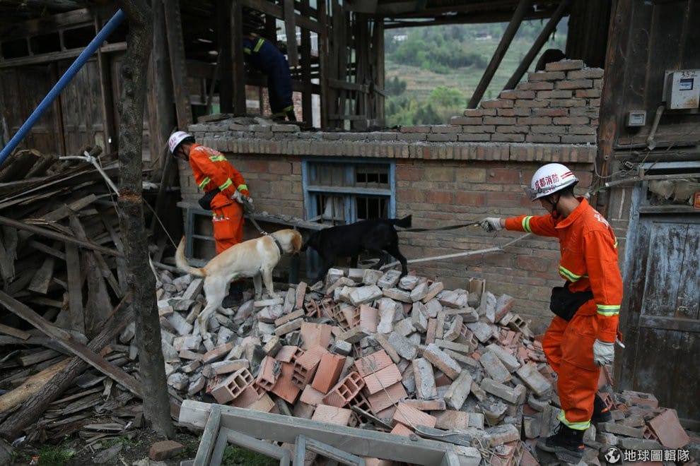 救難團隊正在一間一間塌毀的民房中搜尋是否有生還者。ChinaFotoPress/Getty Images
