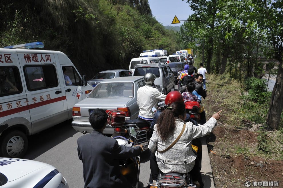 救援物資、救難團隊、想要傳達消息的媒體通通都塞在進入災區的要道上。ChinaFotoPress/Getty Images