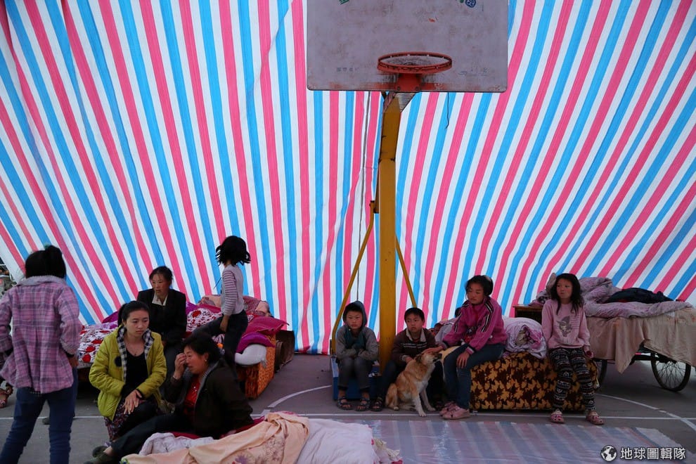 許多家園被震毀的災民,只能先屈身在學校搭建的臨時帳棚下。ChinaFotoPress/Getty Images