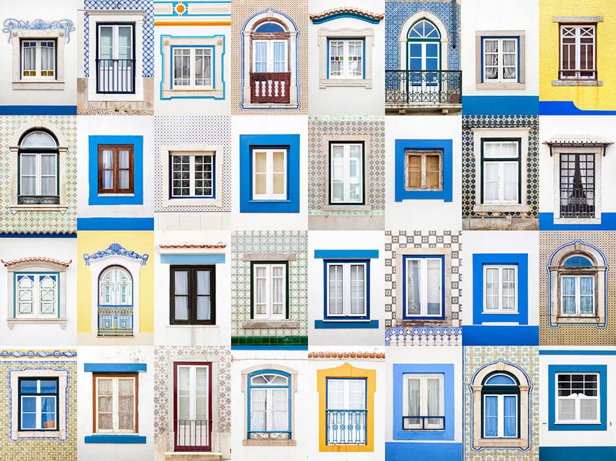 在葡萄牙的海岸城市埃里賽拉,窗戶以藍白搭配為主,磁磚藝術也沒缺席,交織成一幅清爽的畫面。