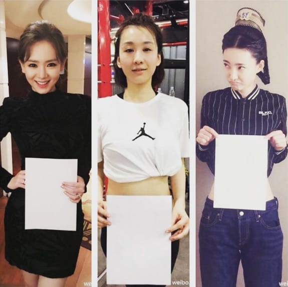 網友asn_online「A4腰」成了選美的標準,圖為一群中國女性用A4紙擋住自己的腰。
