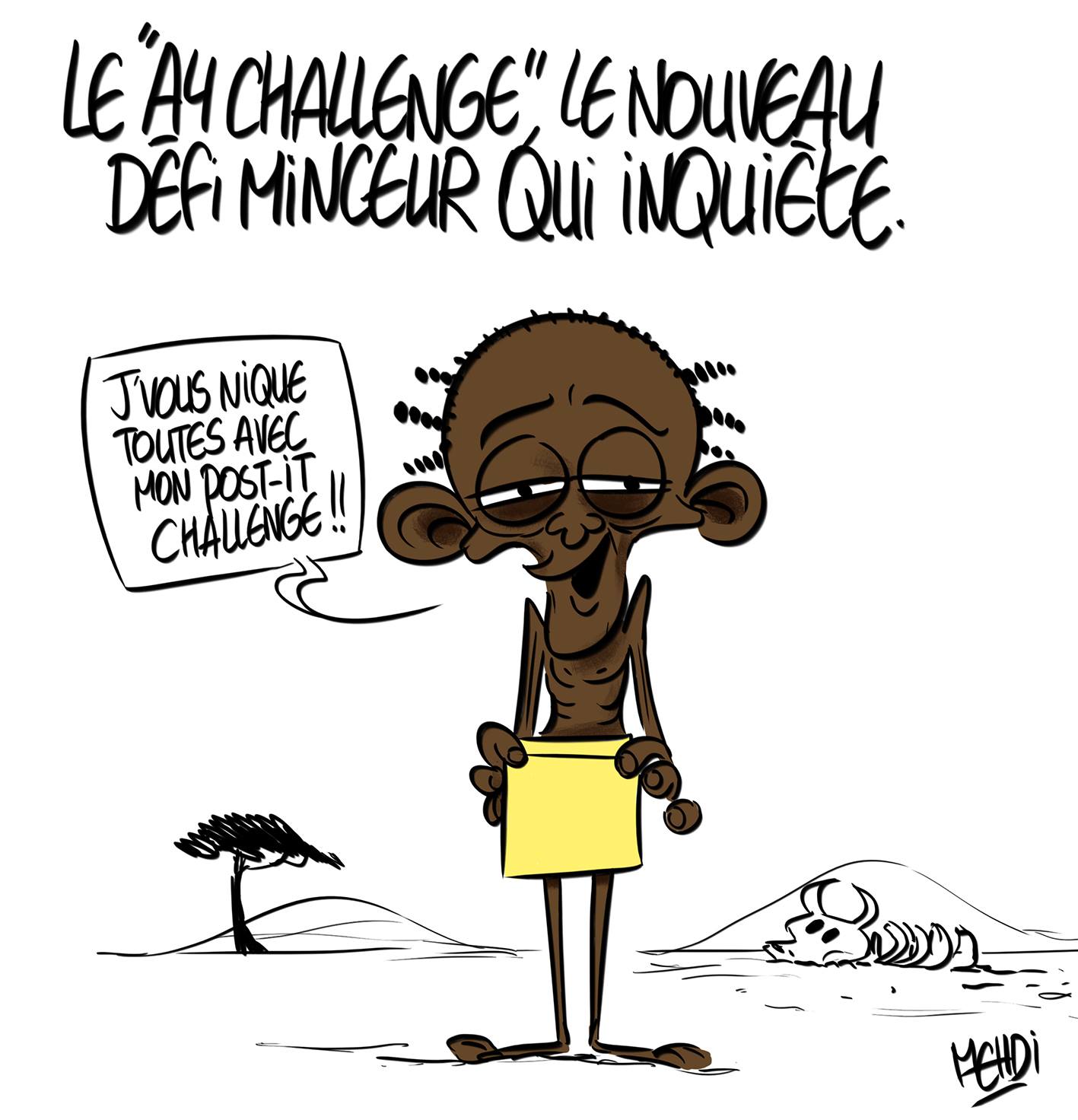 網友Уборщица «Газпрома»更有插畫家用一張骨瘦如柴黑人的漫畫,諷刺地要大家進行「便利貼挑戰」。
