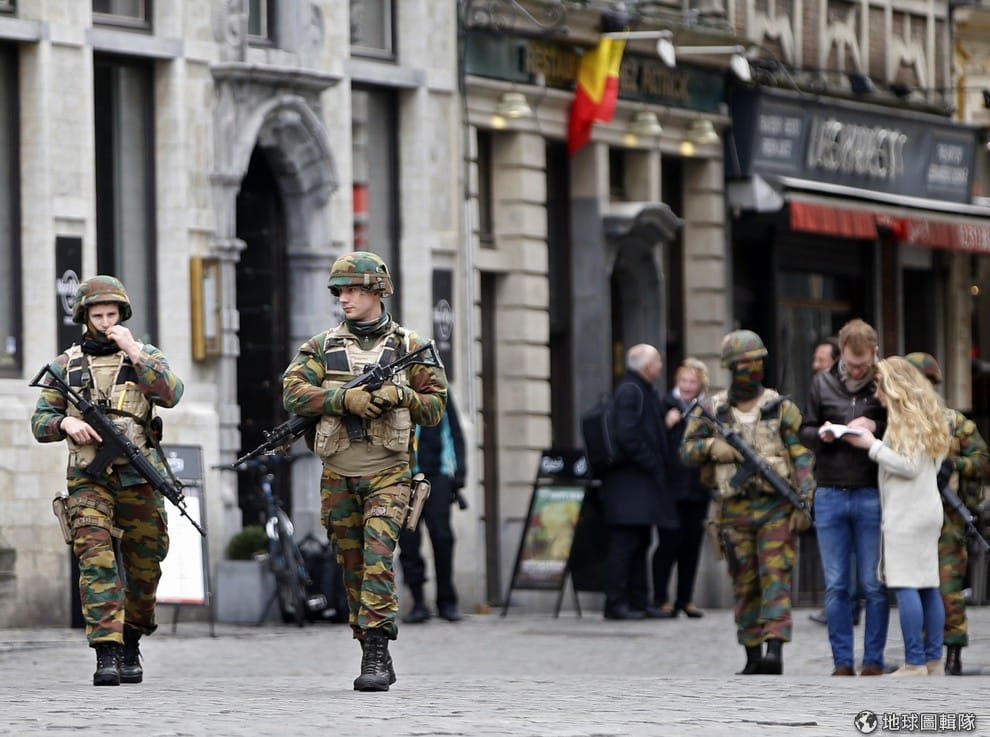 地球圖輯隊23號開始,前往布魯塞爾機場的道路上可以見到比利時軍方進駐。