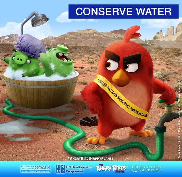 憤怒鳥受到全球大小朋友的歡迎,牠也身體力行推廣節能的重要,圖為牠宣導節約用水的廣告。