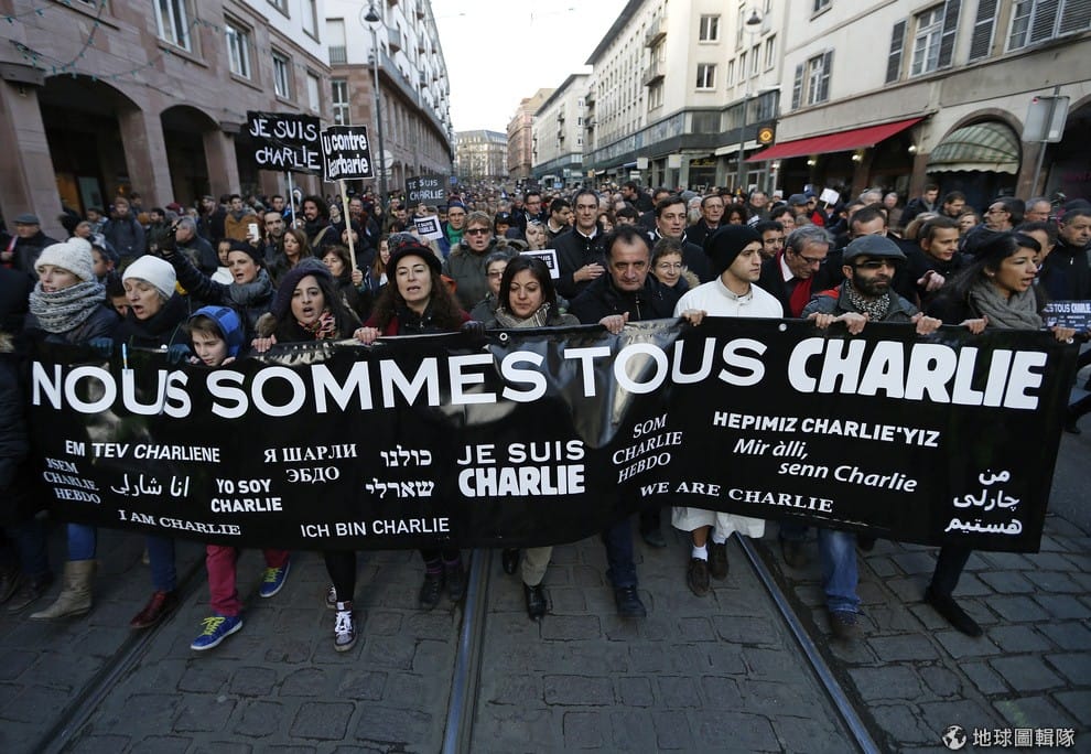 還記得 2015年1月發生的《查理周刊》屠殺事件嗎?這起攻擊案釀成 12名記者編輯身亡,之後也在世界各地引發「伊斯蘭恐懼症」。上圖為 2015年1月在法國舉行的反恐大遊行。