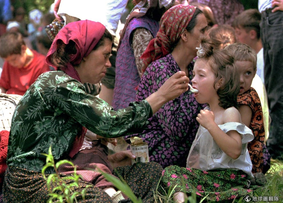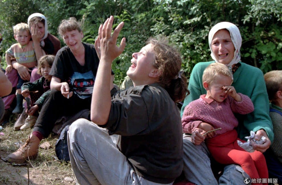 斯雷布雷尼察的穆斯林們舉家逃難,許多女性在這場屠殺中失去家中所有男性成員。