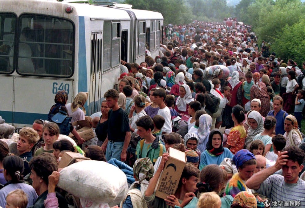 路透社當時,大約有一萬名斯雷布雷尼察的居民爭相搭上巴士和飛機逃難。